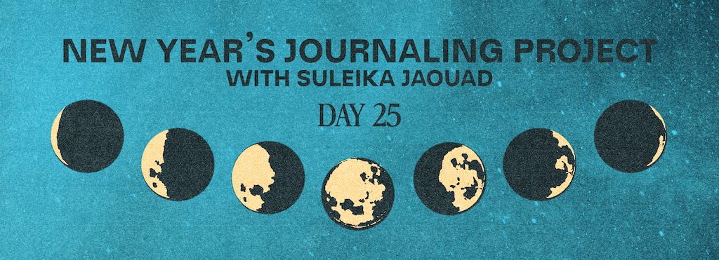 The Sunday newsletters always hits hard. When Suleika said 'I'm done' and Jon kicked in, i cried so hard. What a beautiful love. Thank you for sharing. This prompt reminded me of when I broke my foot in 2021 and had to be cared for by my daughter. What should have been 6 weeks on crutches ended up being 5 months due to complications. I lost my mind and my mental health, but she kicked in high gear and was my life-saver. On a side-note, can we talk about how texturized and full our journals are getting with this 30 day project? The maps and collages..I've never loved my journal more than this one. Thank you for showing us new ways to journal by adding crafts and various mediums, and textures. Happy Sunday everyone!